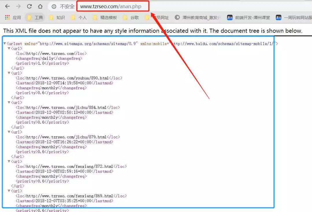 第三种就是阿南最近找到的一个神器,它是一个php文件来的,这个文件需要上传至站点根目录下,然后通过浏览器访问域名/anan.php,你就会发现它会变成站点的网站地图。这个时候我们就可以将当前网站地图内容内容复制下来,在本地创建一个文本粘贴保存更名为sitemap.xml直接上传根目录就可以去提交了。